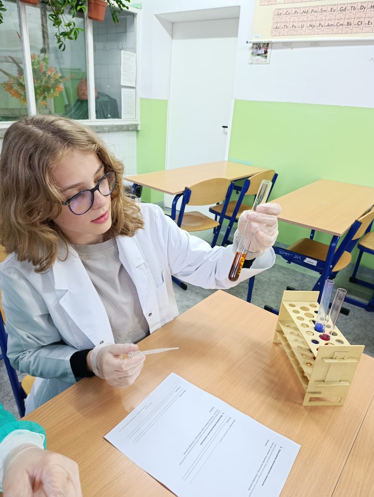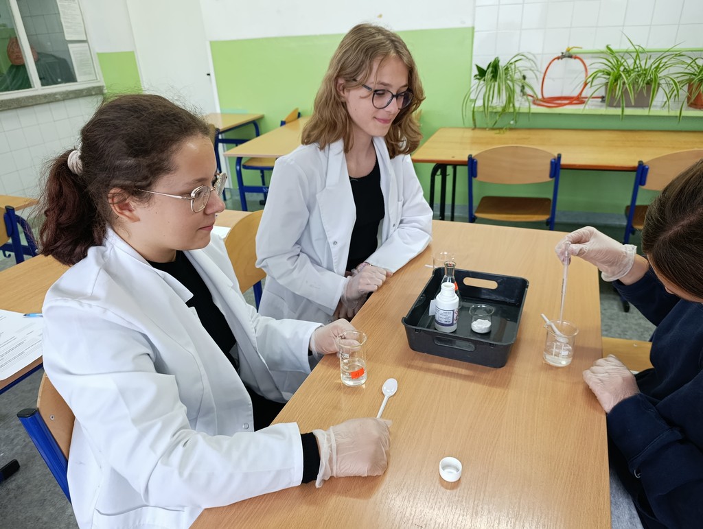Uczniowie biorący udział w projekcie „Edukacja włączająca w gorlickich szkołach podstawowych” podczas wrześniowych zajęć matematyczno –przyrodniczych dla uczniów zdolnych pogłębili i utrwalili wiedzę na temat wodorotlenków. Uczennice miały okazję przeprowadzić osobiście doświadczenia chemiczne związane badaniem odczynu roztworu wodorotlenków, otrzymywania wodorotlenków dobrze rozpuszczalnych oraz nierozpuszczalnych w wodzi. Dziewczyny z dużym zaangażowaniem uczestniczyły w tych zajęciach, chętnie wykonując poszczególne doświadczenia opisane w kartach pracy – dziennikach laboratoryjnych. Dziewczyny rysowały schematy oświadczeń, opisywały obserwacje oraz wyciągały wnioski z przeprowadzonych ćwiczeń . Zajęcia były doskonałym sposobem przyswojenia wiedzy poprzez eksperymenty.