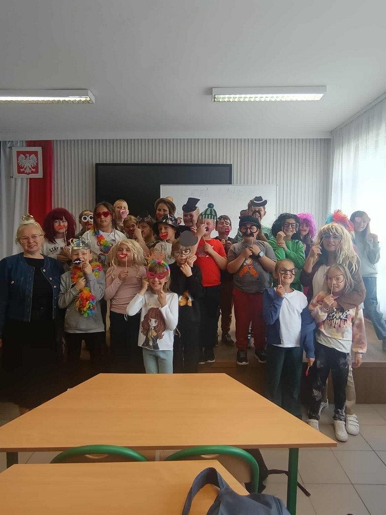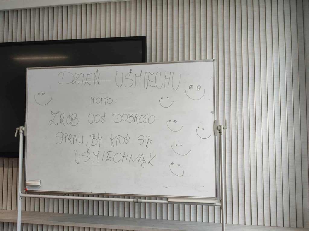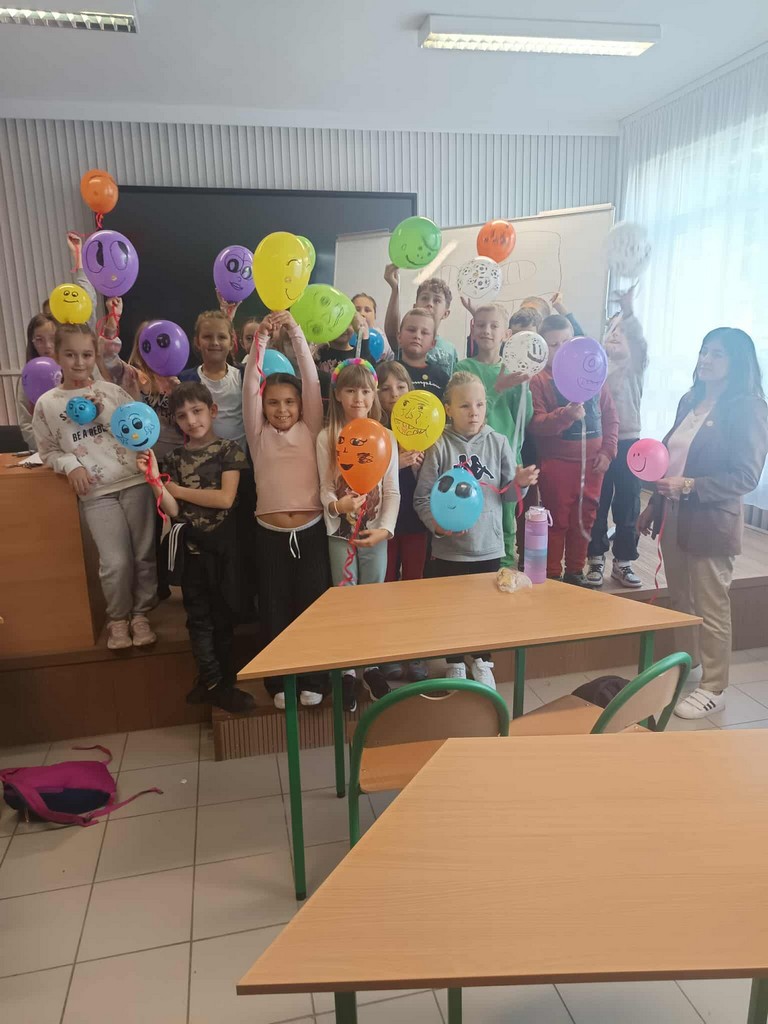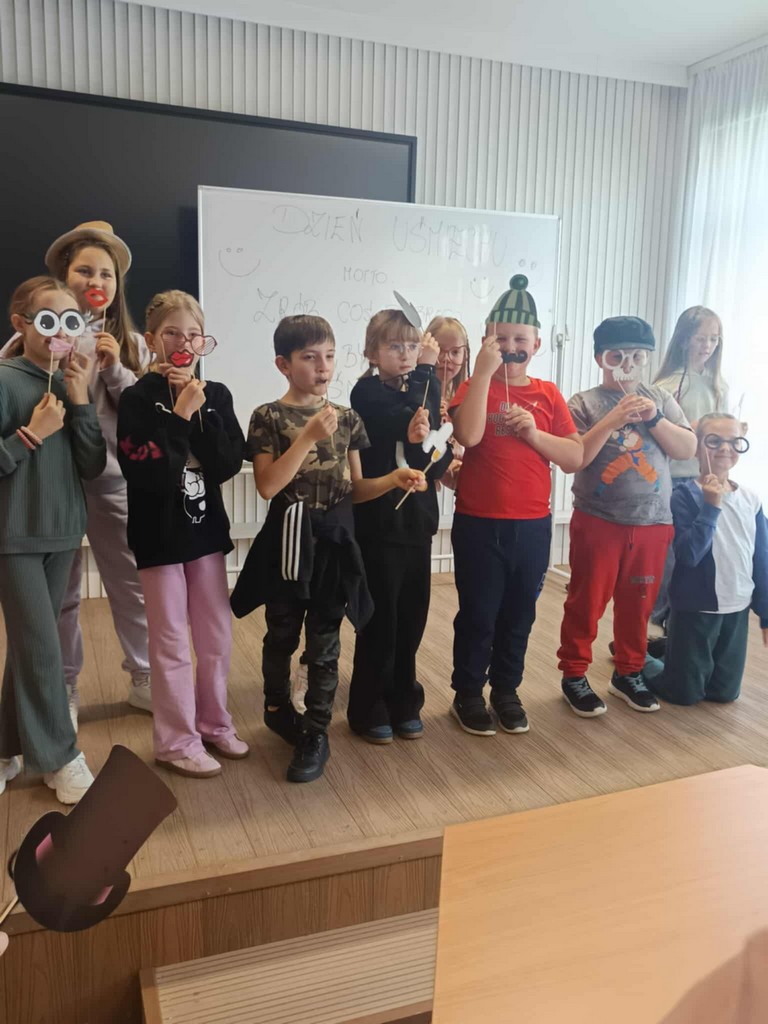 Z okazji Światowego Dnia Uśmiechu uczniowie klasy 3a wzięli udział w ciekawych zajęciach zorganizowanych w ZST w Gorlicach. Dzieci skorzystały z wielu form aktywności fizycznej, w tym ścieżki wspinaczkowej, gier zręcznościowych, tańca nowoczesnego czy siłowni. Jedną z atrakcji była wizyta w pracowni fryzjerskiej, gdzie małym klientkom starsze koleżanki zaplatały piękne warkoczyki. Pani psycholog przeprowadziła pełne zabaw warsztaty pod hasłem "Zrób coś dobrego, by ktoś się uśmiechnął". Dzieci rozwiązywały kalambury, malowały emotki na balonikach. Każdy uczestnik warsztatów otrzymał naklejkę na ubranie z żółtą uśmiechniętą buźką, dobrą wróżbę i kolorowy balonik. Był to dzień pełen wrażeń, radości i uśmiechu, bo przecież uśmiech nie kosztuje nic, a może znaczyć bardzo wiele.