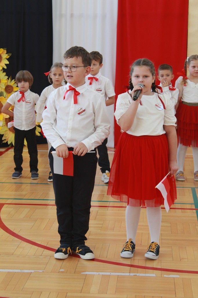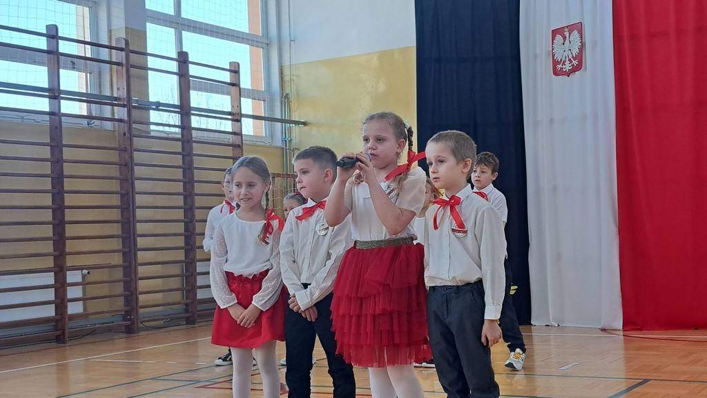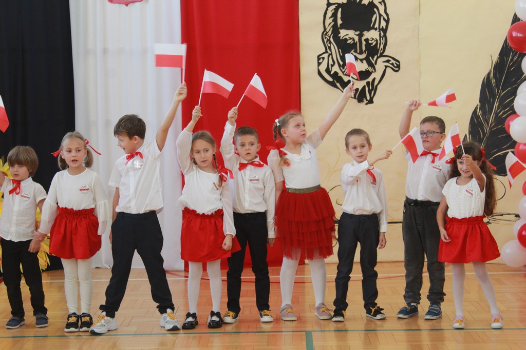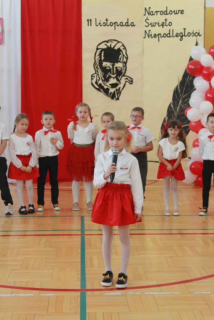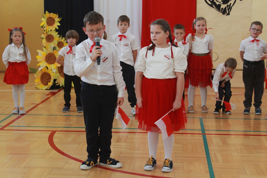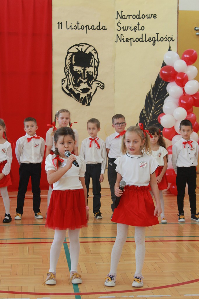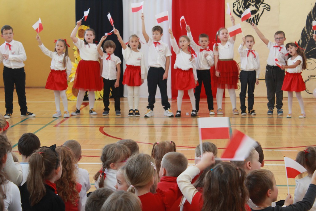 W ramach zajęć młodzi patrioci przygotowali dla swoich kolegów i koleżanek ze szkoły uroczysty Apel z okazji Narodowego Święta Niepodległości. W czasie apelu dzieci zaprezentowały krótki rys historyczny drogi Polski do wolności, zaśpiewali Rotę, a na koniec zaprosili pozostałych uczniów do udziału w akcji „Szkoła do hymnu!”. I tak 7 listopada o symbolicznej godzinie 11.11 wszyscy uczniowie naszej szkoły odśpiewali Mazurka Dąbrowskiego”.