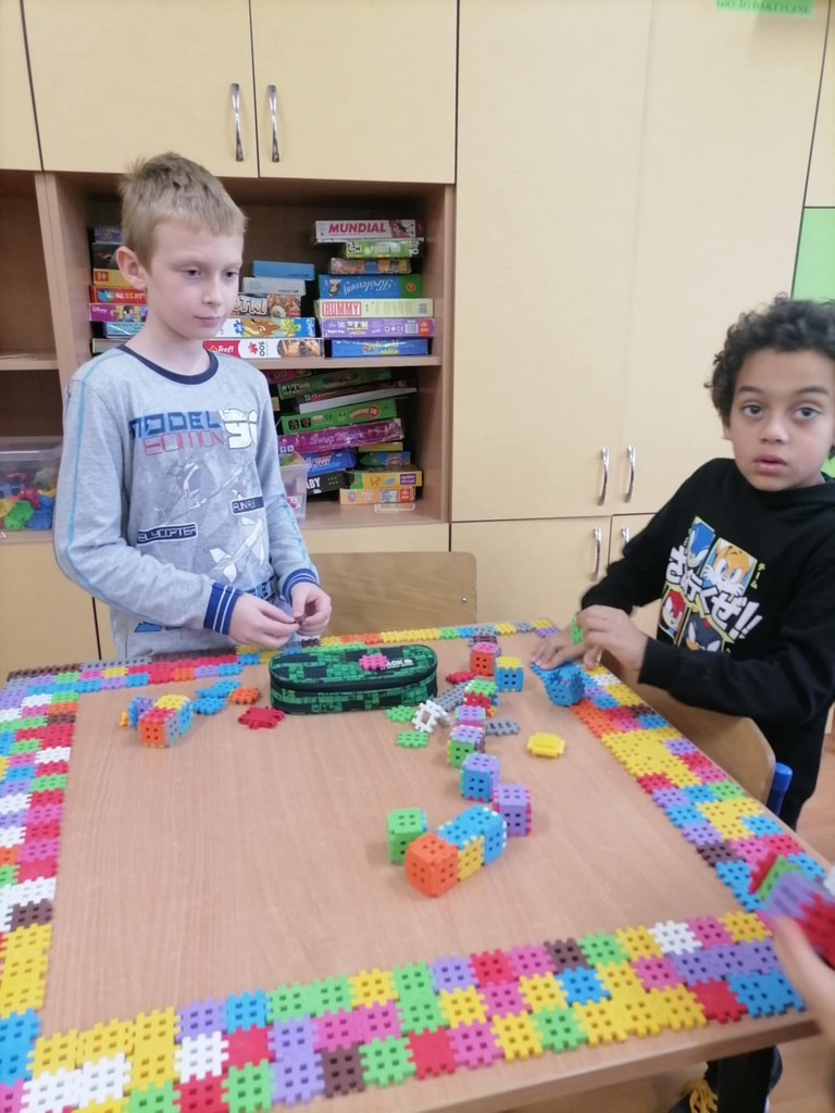 Minęły dwa miesiące roku szkolnego, a tym samym naszego czasu w świetlicy. Po zapoznaniu z regulaminem oraz integracji dzieci, w każdym tygodniu odbywały się zajęcia tematyczne. Dzieci wykonywały różne prace plastyczne, rozwiązywały zagadki, oglądały filmy edukacyjne. Podczas zajęć przypomnieliśmy sobie m. in. zasady zachowania w lesie, rodzaje grzybów, nazwy drzew. Rozmawialiśmy o tym jak dbamy o nasze zwierzęta domowe. W ramach tygodnia o zdrowym żywieniu omawialiśmy piramidę zdrowia, a także powstały „zdrowe śniadaniówki” – prace plastyczne. Nie zabrakło również czasu na zabawy konstrukcyjne oraz kolorowanki. Dużo czasu spędzaliśmy na świeżym powietrzu – w końcu ruch to zdrowie. W ostatnim tygodniu listopada przypomnieliśmy sobie postać ks. Twardowskiego patrona naszej szkoły, stworzyliśmy małe dynie oraz dowiedzieliśmy jak obchodzi się 1 listopada w różnych krajach.
