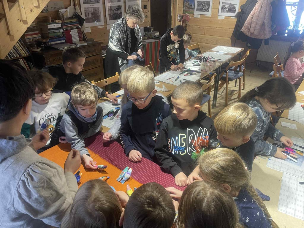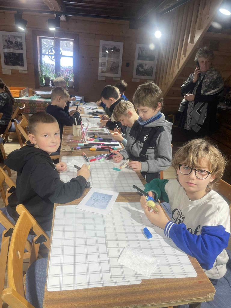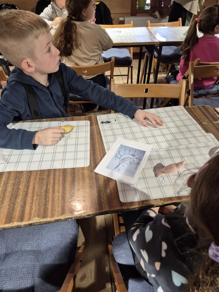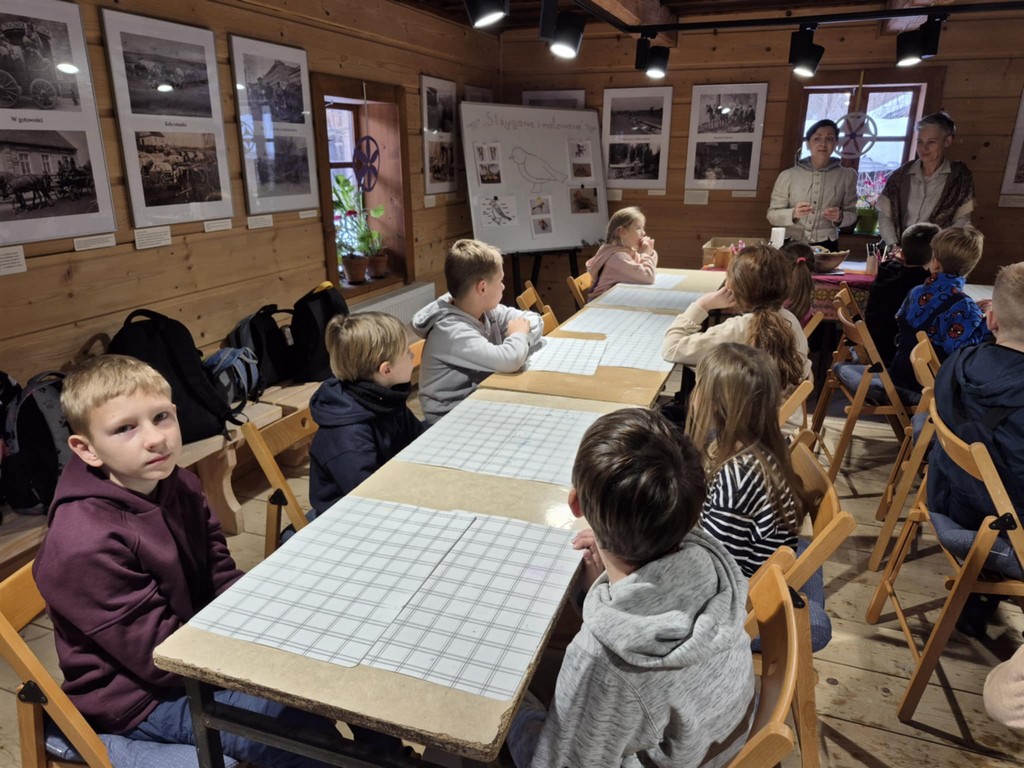 W Zagrodzie Maziarskiej w Łosiu odbyły się warsztaty edukacyjno-plastyczne poświęcone tradycyjnemu rzemiosłu łemkowskiemu. Uczestnikami zajęć byli uczniowie klas 2a i 2b, którzy poznali historię maziarstwa oraz dawne techniki pracy w drewnie. Podczas części edukacyjnej dzieci uczyły się rozpoznawać najpopularniejsze gatunki ptaków występujących w Polsce. Następnie samodzielnie malowały strugane, drewniane ptaki – charakterystyczne dla lokalnego rękodzieła. W twórczej, radosnej atmosferze uczniowie rozwijali zdolności manualne, kreatywność i wrażliwość na regionalne dziedzictwo. Warsztaty zakończyły się prezentacją wykonanych prac.