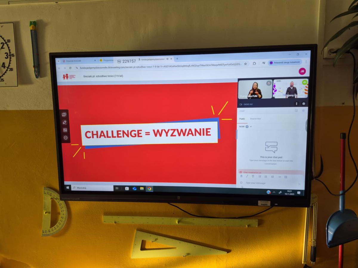 W ramach zajęć omówiono również temat internetowych challenge’y – popularnych wśród młodych użytkowników sieci wyzwań, które nie zawsze są bezpieczne. Uczniowie poznali przykłady ryzykownych zabaw, dowiedzieli się, jakie mogą być ich konsekwencje oraz jak rozsądnie podchodzić do tego typu treści.