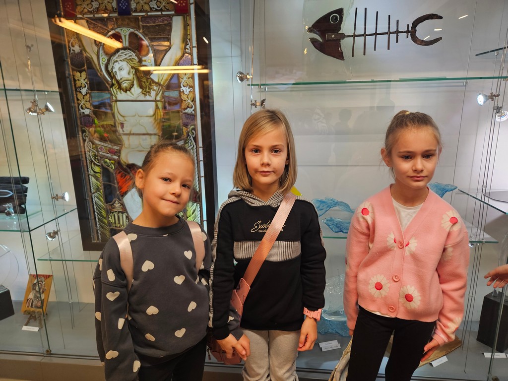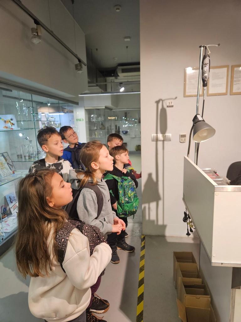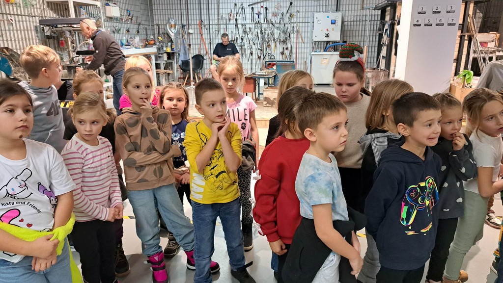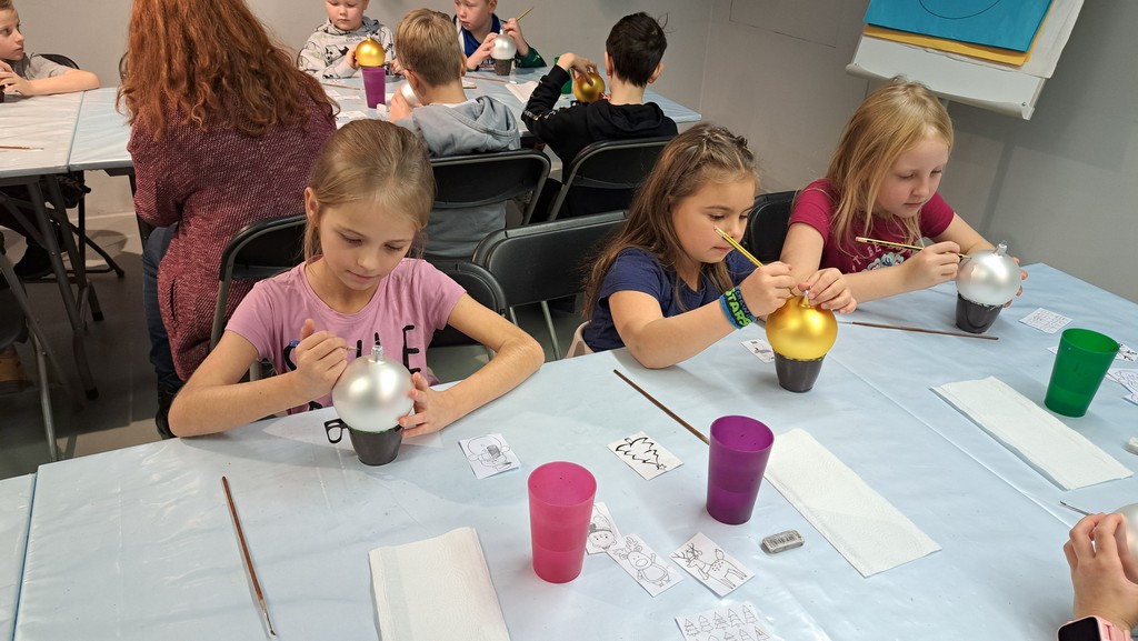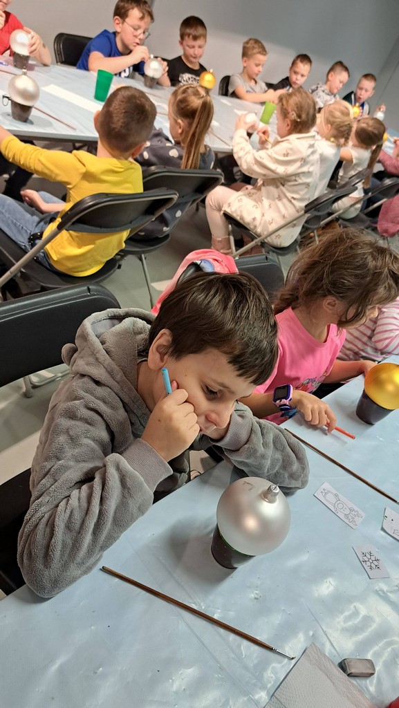 W dniu 10 grudnia uczniowie z klasy 1c i 2c pojechali na wycieczkę do Centrum Dziedzictwa Szkła w Krośnie. Celem wyjazdu było poznanie historii produkcji szkła oraz produktów z niego wytwarzanych. Uczniowie zwiedzili bardzo ciekawą ekspozycję szkła artystycznego, a w sali kinowej obejrzeli film poświęcony historii wytapiania szkła w krośnieńskich hutach. Uczestniczyli w pokazie hutniczym, a następnie własnoręcznie wybijali szklane medale. Głównym punktem programu wycieczki były jednak warsztaty malowania i ozdabiania bombek choinkowych. Dzieci z niezwykłym zaangażowaniem najpierw zaprojektowały wzór na bombkach, po czym pomalowały je farbami arylowymi i ozdobiły brokatem. Efekty ich pracy były niesamowite, co można zobaczyć na poniższych zdjęciach.