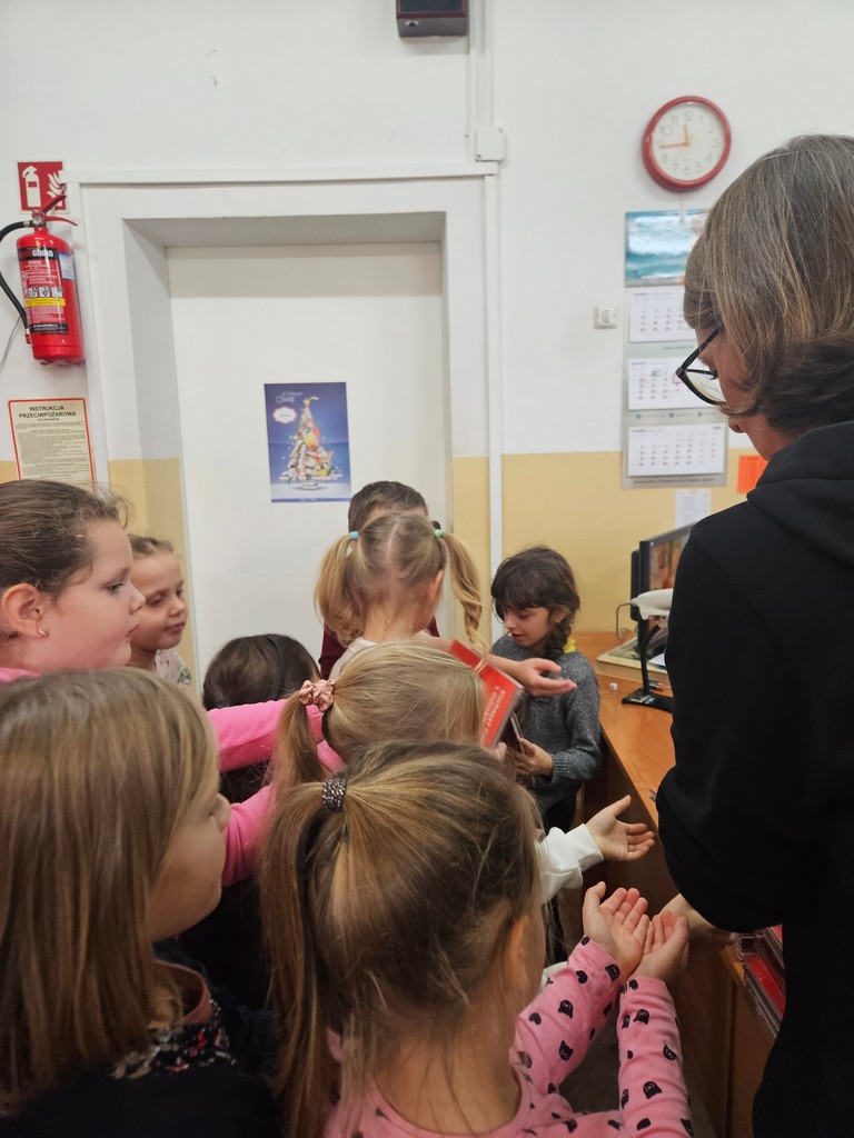 W pierwszych dniach grudnia uczniowie klas pierwszych uczestniczyli w zajęciach bibliotecznych przeprowadzonych przez Panią Karolinę Rybczyk. Poznali zasady korzystania z zasobów wypożyczalni oraz właściwego obchodzenia się z książkami. Pani Karolina przygotowała dla uczniów niezwykłą niespodziankę – teatrzyk Kamishibai. Dzieci mogły obejrzeć magiczną opowieść pt. „Wypożyczalnia skrzydeł”, dzięki której dowiedziały się, że książki to skrzydła umożliwiające przeniesienie ich do światów baśni, bajek i niesamowitych opowieści. Pod koniec zajęć uczniowie mogli obejrzeć księgozbiór szkolnej biblioteki i wypożyczyć wybrane przez siebie książki.
