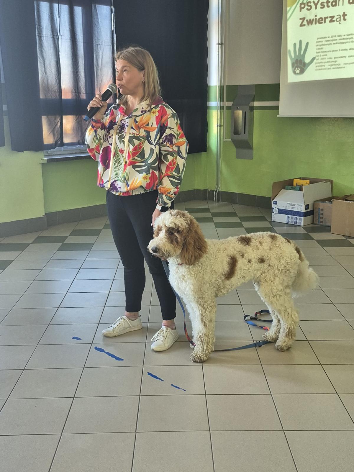 Prelekcja była bardzo ciekawa i poruszała ważne tematy dotyczące zwierząt – odpowiedzialnej opieki, właściwego traktowania oraz potrzeb bezdomnych psów i kotów. Uczniowie dowiedzieli się, jak bezpiecznie zachowywać się w kontakcie z czworonogami oraz w jaki sposób mogą pomagać zwierzętom na co dzień.