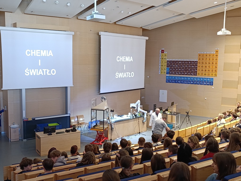W dniu 12 marca 2026 r. uczniowie klas ósmych byli pod opieką pani Katarzyny Furman, pani Moniki Dobek, pani Alicji Haluch oraz Doroty Januś na wycieczce edukacyjnej w Krakowie. Młodzież po raz kolejny uczestniczyła w spotkaniu na Uniwersytecie Jagiellońskim na Wydziale Chemii, gdzie miała okazję zobaczyć ciekawe doświadczenia chemiczne pt: „Chemia i światło”. Podczas prezentacji uczniowie zobaczyli interesujące doświadczenia w różny sposób związane ze światłem. Doświadczenia były ilustracją ciekawie przygotowanego wykładu, w którym zostały omówione w sposób przystępny procesy związane ze światłem. Uczniowie dowiedzieli się o takich procesach jak: luminescencja, fluorescencja, fosforescencja, radioluminescencja, chemiluminescencja, tryboluminescencja. Dzięki tym pokazom uczniowie klas ósmych pogłębili swoją wiedzę przyrodniczą i chemiczną. Po pobycie na Uniwersytecie uczniowie udali się jeszcze na seans filmowy do kina Cinema City.