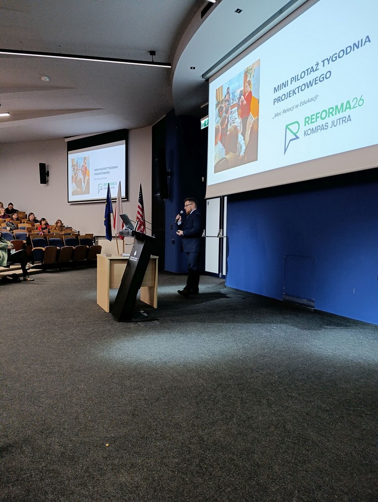 Podczas swojego wystąpienia dyrektor Paweł Stabach przedstawił minipilotaż tygodnia projektowego, który został zrealizowany przy ogromnym zaangażowaniu nauczycieli w naszej szkole jako element wdrażania nowoczesnych rozwiązań edukacyjnych.