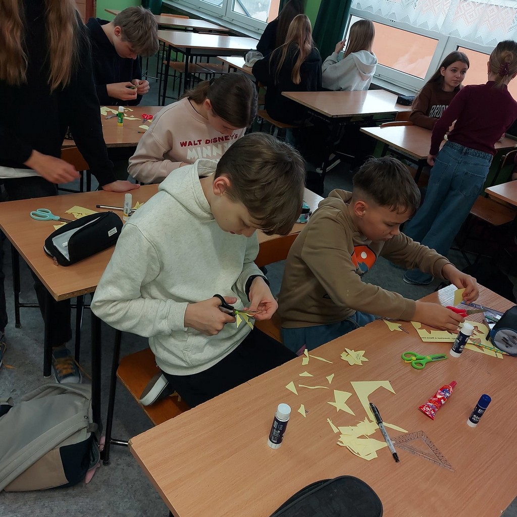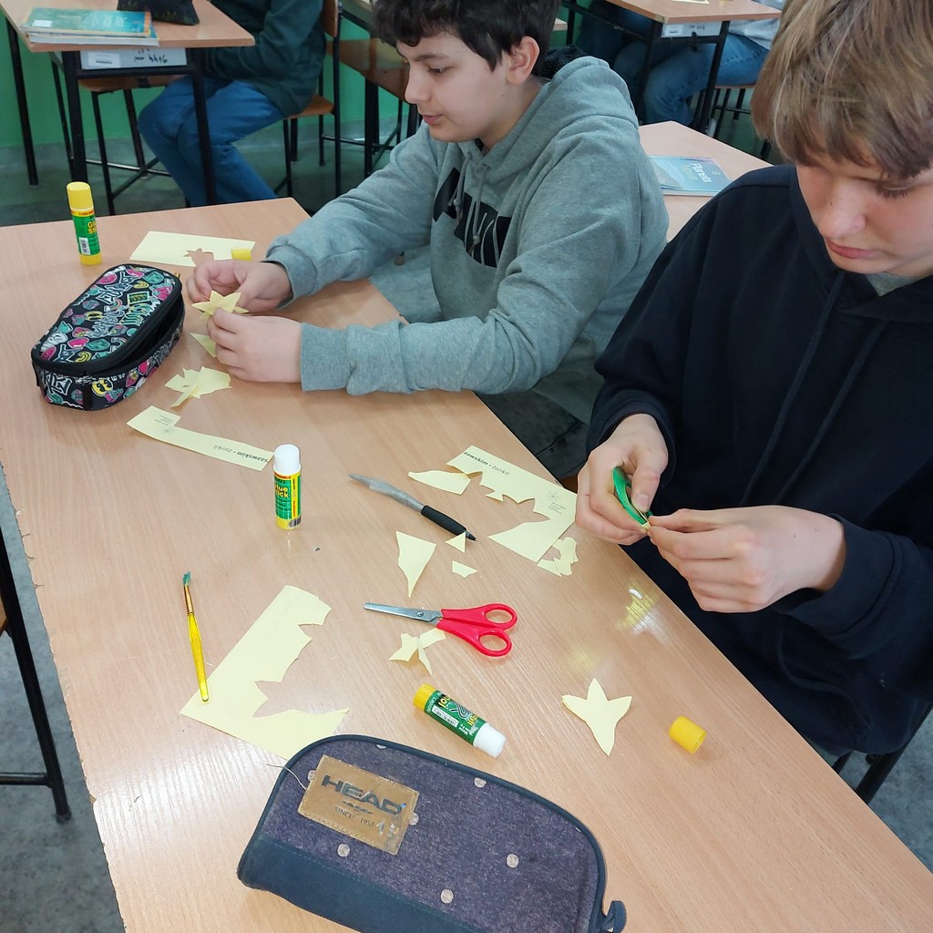 Klasy 5c, 6a oraz 6b podczas lekcji historii z panią Magdaleną Tokarz przygotowały piękne papierowe żonkile. Uczniowie z dużym zaangażowaniem wykonywali swoje prace, poznając jednocześnie znaczenie tej wyjątkowej akcji, której hasłem jest „Łączy nas pamięć”
