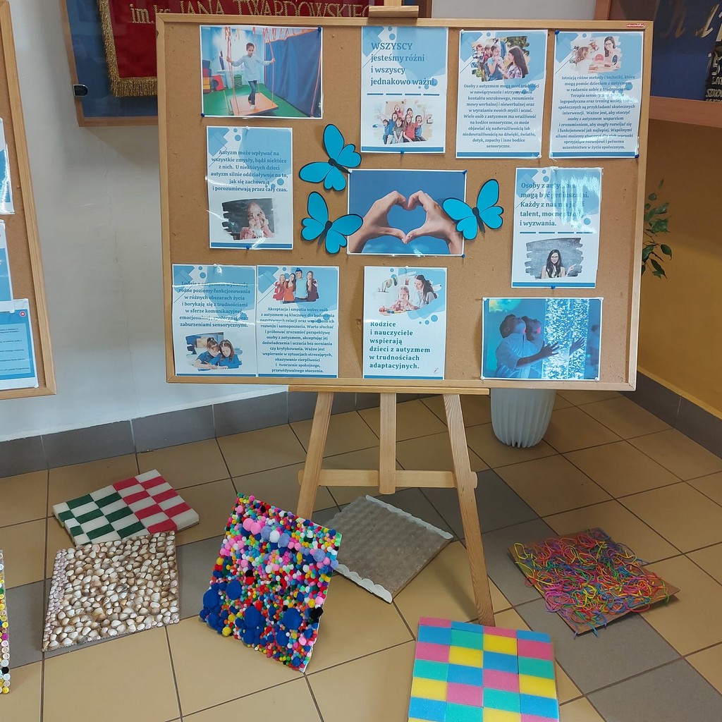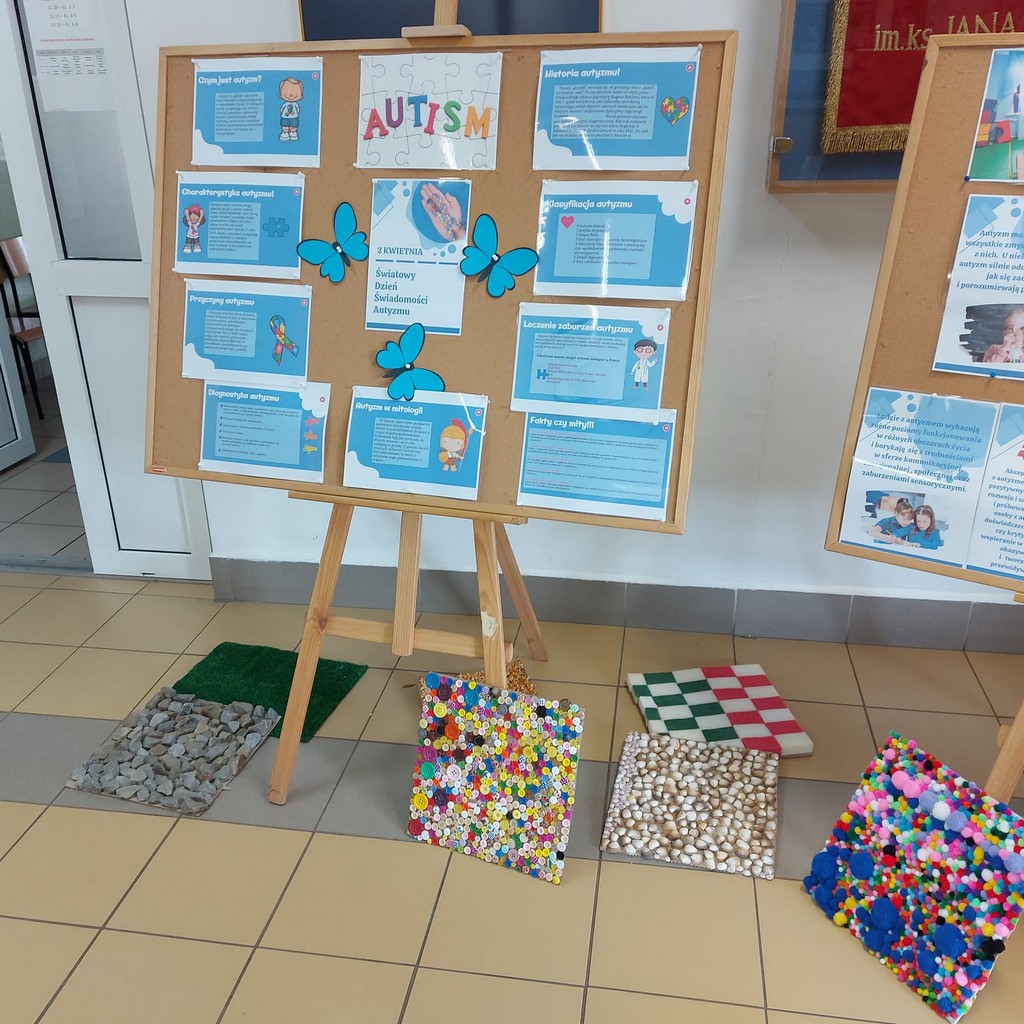 W ramach Tygodnia Profilaktyki Zdrowotnej uczniowie mieli okazję zapoznać się z wyjątkową wystawą „Świat autyzmu”, która została przygotowana na parterze oraz drugim piętrze szkoły. Ekspozycja przybliżała temat spektrum autyzmu, rozwijała empatię i uwrażliwiała na potrzeby osób neuroróżnorodnych.