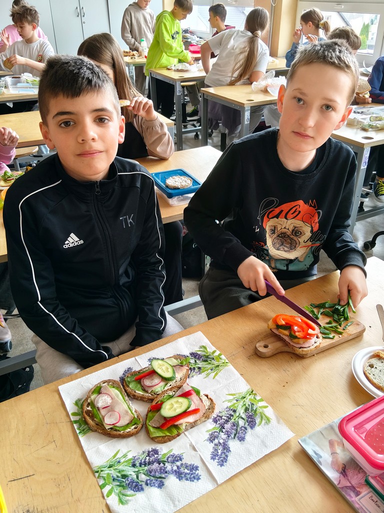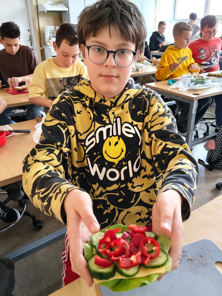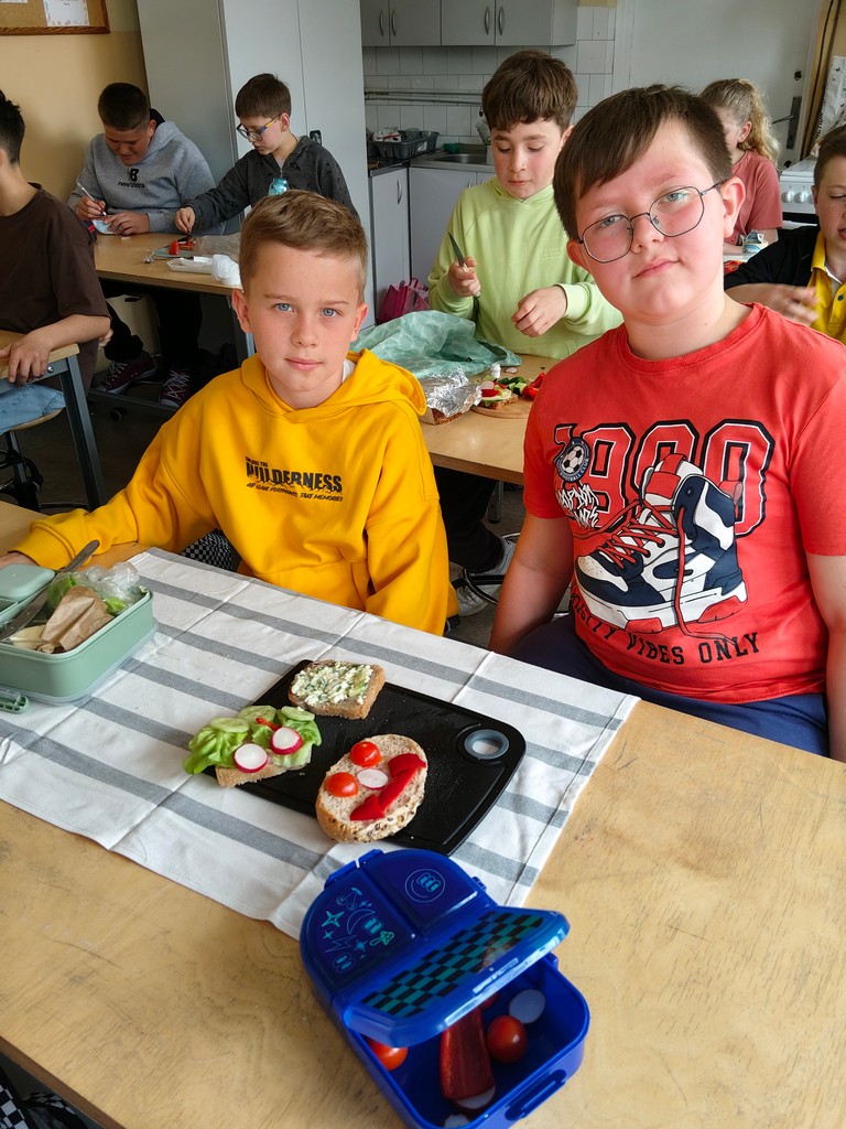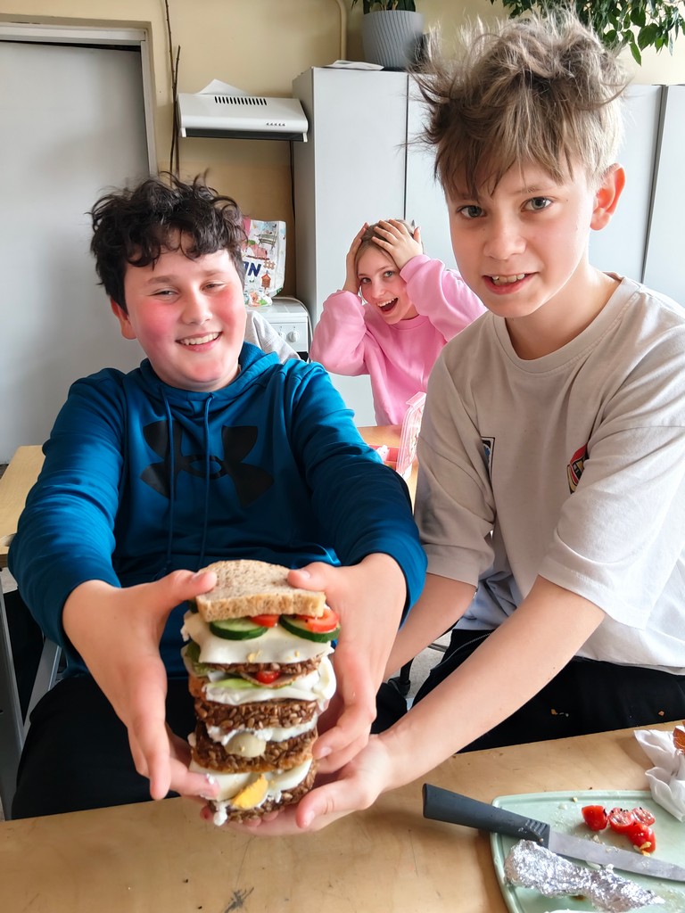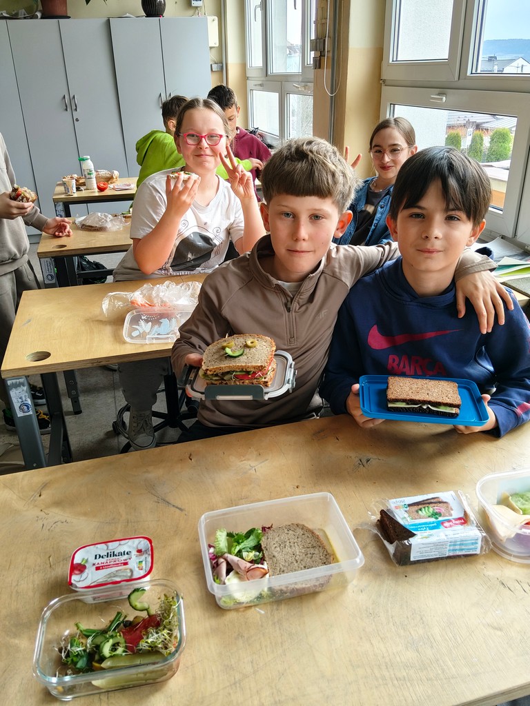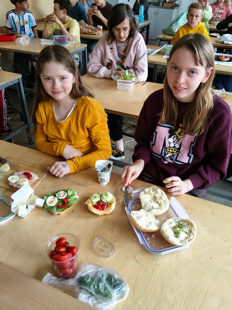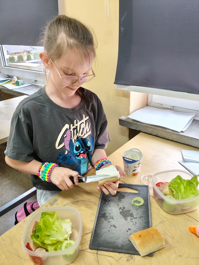 Dużym zainteresowaniem cieszył się także „Dzień Lemoniady” – uczniowie ubrani w żółte i pomarańczowe stroje rozświetlili szkolne korytarze.  Uczniowie klas piątych i szóstych w ramach Tygodnia Profilaktyki Zdrowotnej uczestniczyli w wyjątkowej lekcji techniki, podczas której przygotowywali zdrowe kanapki. Celem zajęć było kształtowanie prawidłowych nawyków żywieniowych oraz zwrócenie uwagi na znaczenie zdrowej diety w codziennym życiu. Podczas lekcji uczniowie samodzielnie komponowali kanapki, korzystając z wartościowych produktów, takich jak pełnoziarniste pieczywo, świeże warzywa, sery, jajka oraz chude wędliny. Zwracano uwagę na higienę pracy oraz bezpieczne korzystanie z przyborów kuchennych. Na zakończenie zajęć odbyła się wspólna degustacja, podczas której uczniowie mogli spróbować swoich wyrobów i podzielić się wrażeniami. Nie zabrakło również pomysłowości – kanapki były kolorowe, estetyczne i zachęcające do jedzenia. Zajęcia przebiegły w radosnej atmosferze, a uczniowie nie tylko dobrze się bawili, ale także zdobyli praktyczną wiedzę na temat zdrowego odżywienia.