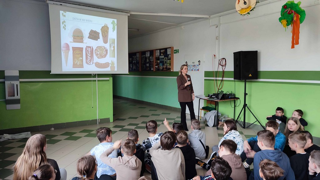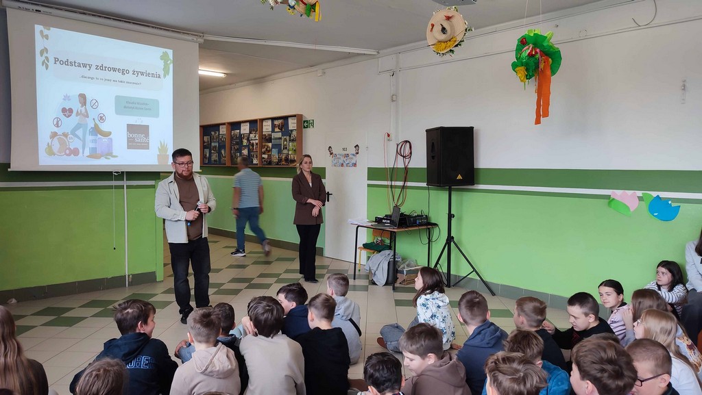 Promowanie zdrowego stylu życia było jednym z głównych celów tygodnia profilaktyki. Uczniowie mogli obejrzeć wystawę „Świat witamin”, prezentującą znaczenie składników odżywczych w codziennej diecie. Dodatkowo klasy czwarte uczestniczyły w spotkaniu z dietetykiem, który w ciekawy sposób opowiadał o zasadach zdrowego odżywiania.