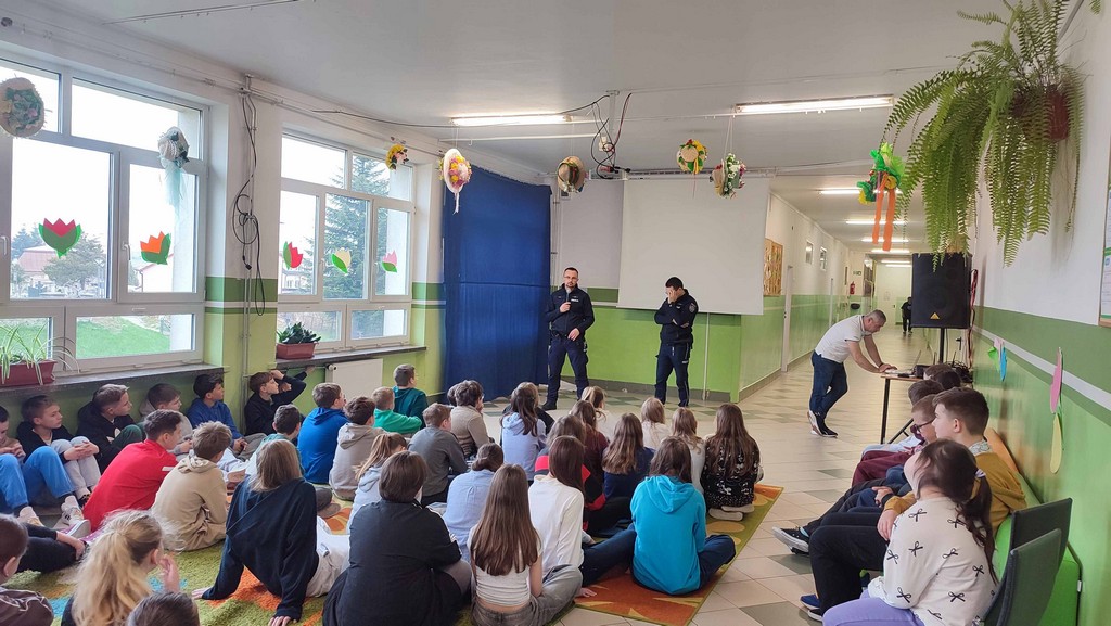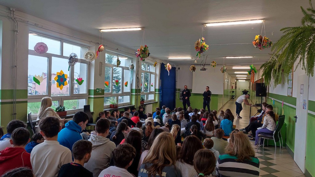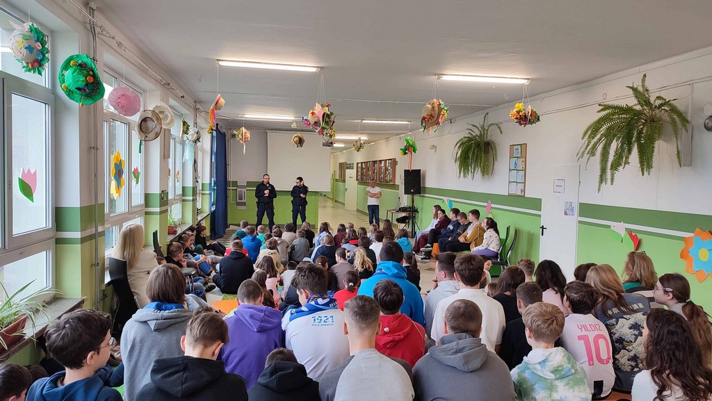 Podczas tygodnia profilaktyki odbyły się spotkania z funkcjonariuszami policji. Uczniowie klas 6–7 wzięli udział w akcji „Kibicuj z klasą”, promującej kulturalne i bezpieczne zachowanie podczas wydarzeń sportowych.
