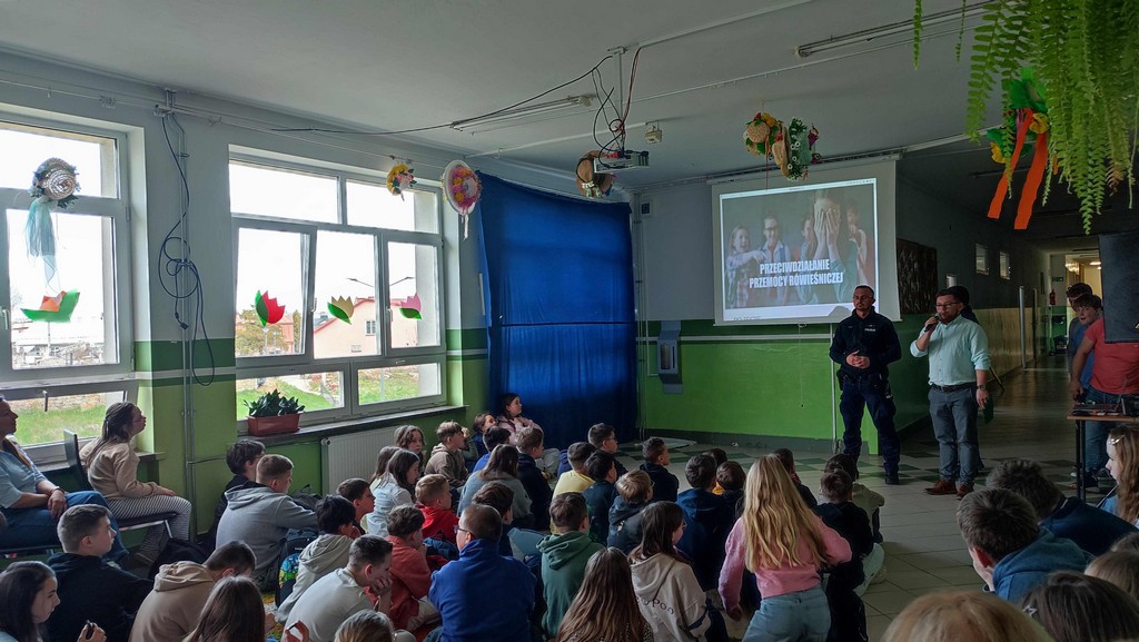 Z kolei dla klas 4–8 zorganizowano spotkanie dotyczące przemocy rówieśniczej i hejtu w szkole oraz w internecie. Była to ważna lekcja odpowiedzialności i szacunku wobec innych.