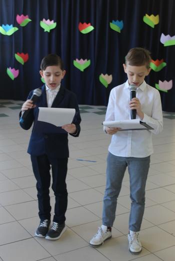 Galerie zdjęć Powiatowy Konkurs Języka Angielskiego 31.03.2026 Nauka pełna kreatywności i radości 31.03.2026 Wizyta wolontariuszy „Małe Serduszka” w Domu Pomocy Społecznej w Wapiennem 31.03.2026 Palmy wielkanocne! 30.03.2026 Super Klasa 2026 – emocje, tradycja i zwycięstwo klasy 8a 27.03.2026 Powitanie Wiosny 25.03.2026 Konkurs na przebranie i logo klasy 24.03.2026 Gminny Konkurs ekologiczny 23.03.2026 Koncert z okazji Dnia Kobiet 23.03.2026 Udział dyrektora w konferencji „Moc relacji w edukacji” – praktyka, która działa 19.03.2026 III Powiatowy Konkurs Ekologiczno – Chemiczny „Człowiek, chemia i środowisko” 18.03.2026 Wyjazd do Krakowa 16.03.2026 Dzień Kobiet w klasie 1c 10.03.2026 Spotkanie online uczniów z Gorlic i Kałusza 5.03.2026 Spotkanie w ramach trasy „Kierunek – Kompas Jutra” z udziałem przedstawicieli MZS nr 5 4.03.2026 Lekcja dla przedszkolaków oraz uczniów klas 1-2 szkoły podstawowej 2.03.2026 Spotkanie uczniów klas 1–3 z wolontariuszką Fundacji „PSYstań” 2.03.2026 Udział uczniów klasy 7a w Europejskim Forum Dziedzictwa I Wojny Światowej w Gorlicach 27.02.2026 Certyfikat „Kreatywne Przedszkole” 18.02.2026 Zimowisko 2026 17.02.2026